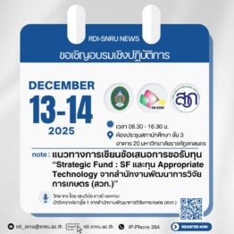 ขอเชิญร่วมส่งผลงานเข้าร่วมการประกวด ในงาน SNRU Research […]